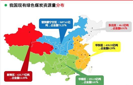 在我国,现有绿色煤炭资源量5048.95亿吨,其中晋陕蒙宁甘区就占73.23%,共3697.61亿吨,而且在“煤炭资源高效回收及节能战略研究”成果发布会,上工程院院士、安徽理工大学副校长袁亮说:“晋陕蒙甘宁地区是我国煤炭资源的富集区且资源禀赋最为优异,应作为未来30年,即2020年至2050年期间煤炭的重点开发区。”