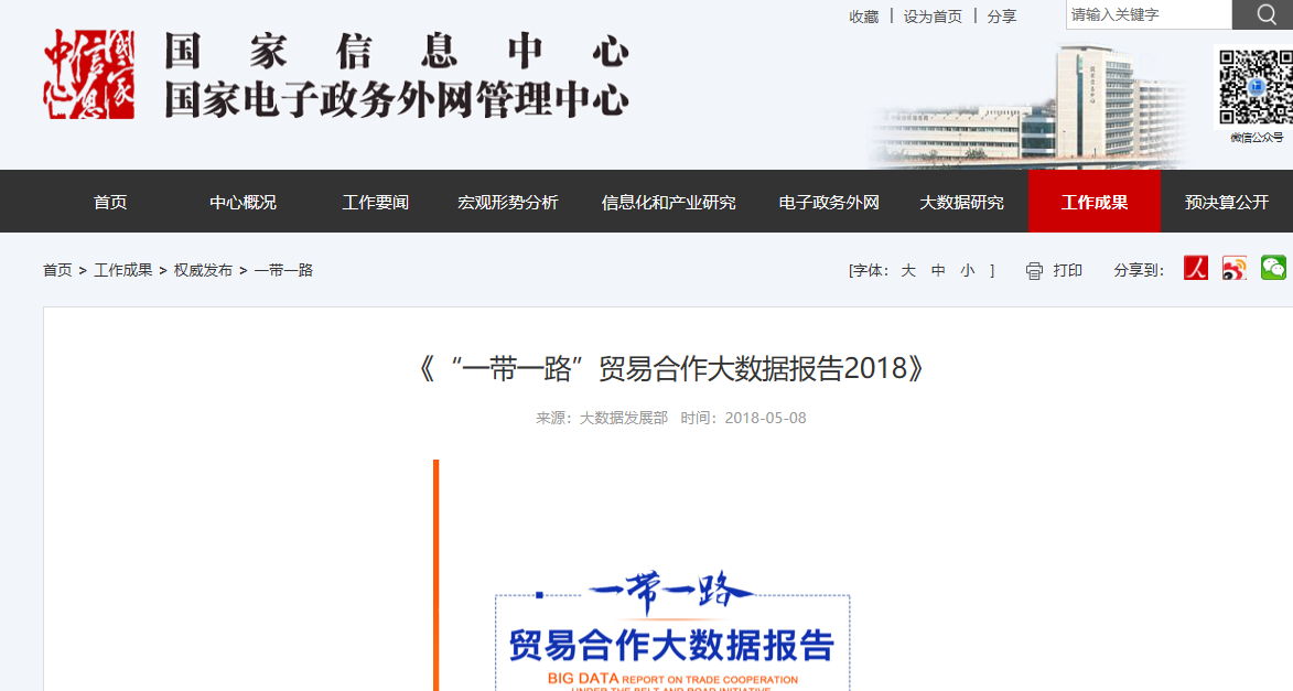 2018年5月,国家信息中心发布了《“一带一路”贸易合作大数据报告2018》,此报告在国家信息中心有直接下载的免费资源