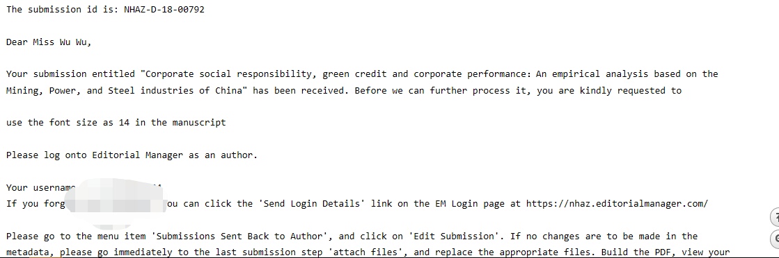 投稿后 编辑部回信要求修改字体大小为14号,具体内容见图,真的只要修改字体重新提交就可以了吗?谢谢大家解答
