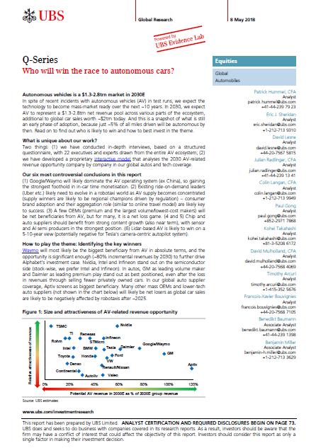 研报——谁将赢得无人驾驶汽车的比赛?