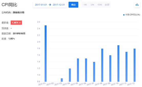 如2017年的CPI同比数据,通胀率水平不超过2.6: