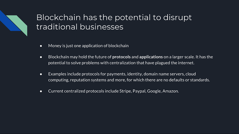 智能合约可以应用到许多不同的领域,而不仅仅是众筹。银行可以利用它发放贷款或提供自动支付;保险公司可以用它来处理某些索赔;邮政公司可以用它来交货付款等等。