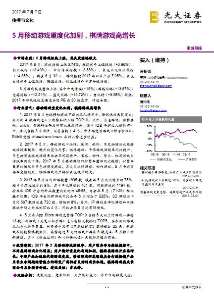 光大证券-传播与文化行业手游月报:5月移动游戏重度化加剧,棋牌游戏高增长.pdf
