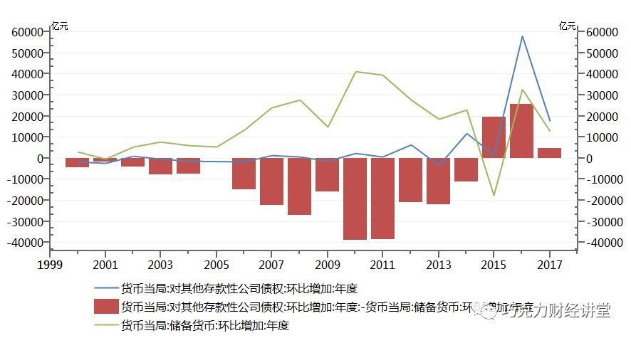 看到没有,2014年以后,债权增加量已经超过货币增加量了。除了购买债券,其他渠道无法提供新增的流动性。