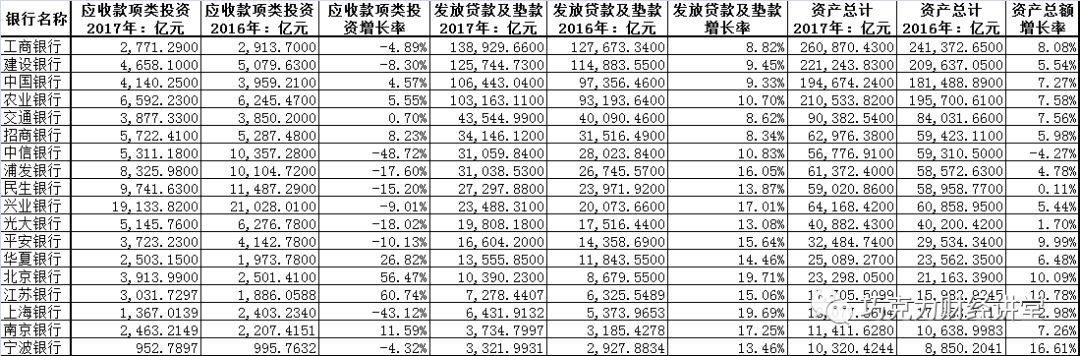 更为悲剧的是,2017年以来,出于防范金融风险尤其是银行业风险的需求,银行业普遍开始了去杠杆流程。其主要表现就是大量的理财产品(主要体现为应收账款类投资)规模缩减,其增速远不及同期贷款和总资产规模增长率。具体数据如下表所示。
