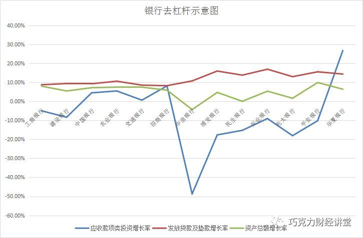做成图表来看,可见主要商业银行除了华夏银行外,去杠杆力度都不小。