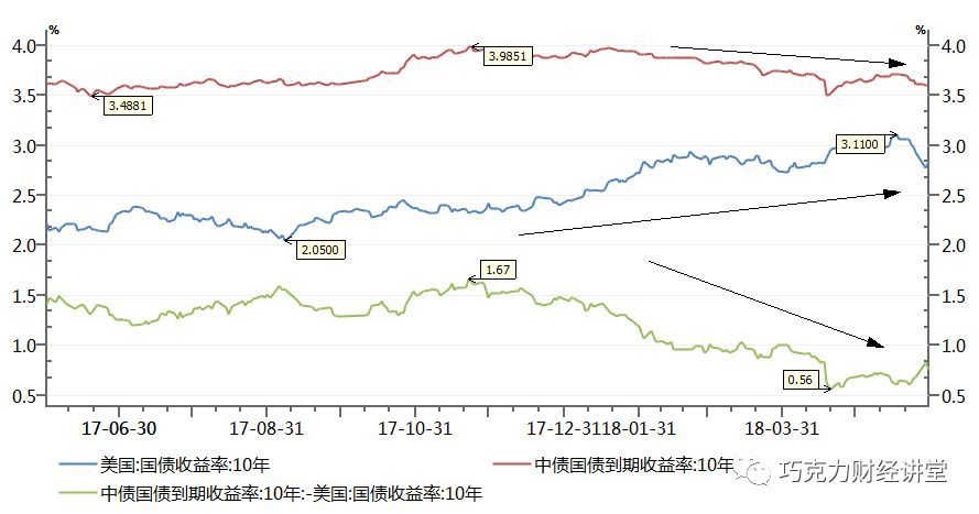 于是从三月底开始,核心资产利率开始大幅下降。中国国债利率下降接近50个bp,和美债利率溢价也出现了少有的快速缩窄,甚至一度缩减超过100个bp。双方走势开始背离。中国国债似乎要摆脱“全球资产定价锚”的影响。