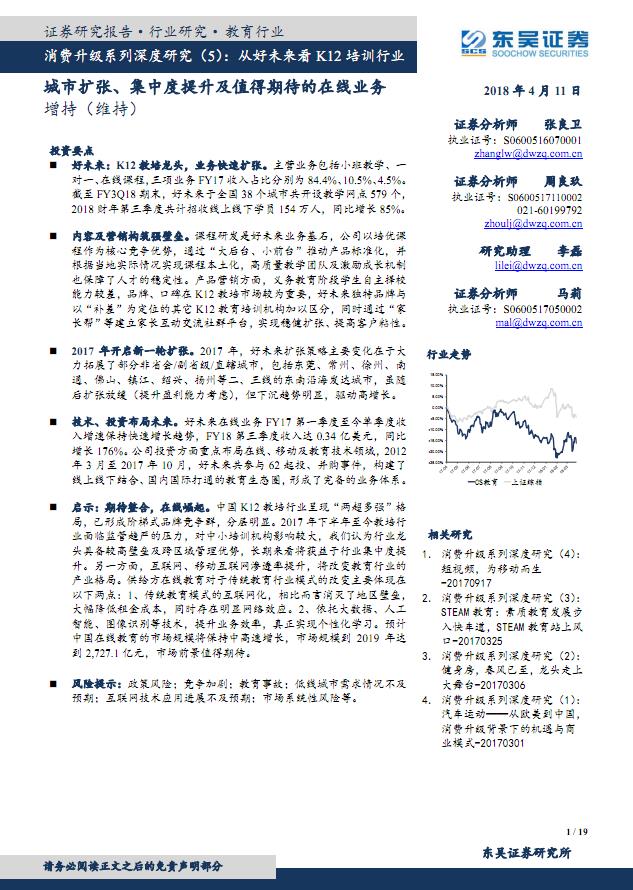 东吴证券-教育行业消费升级系列深度研究5:从好未来看K12培训行业,城市扩张集中度提升.pdf
