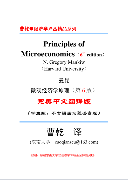 曼昆-微观经济学原理(中文六版+英文七版)