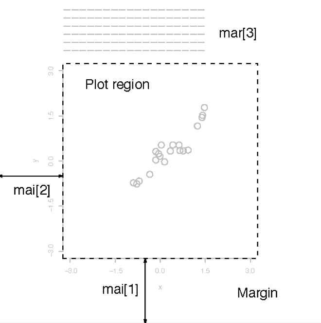 mar:同mai,设定图形四周的空白尺寸,以mar=c(bottom,left,top,right)形式使用,默认为mar=c(5,4,4,2)+0.1;