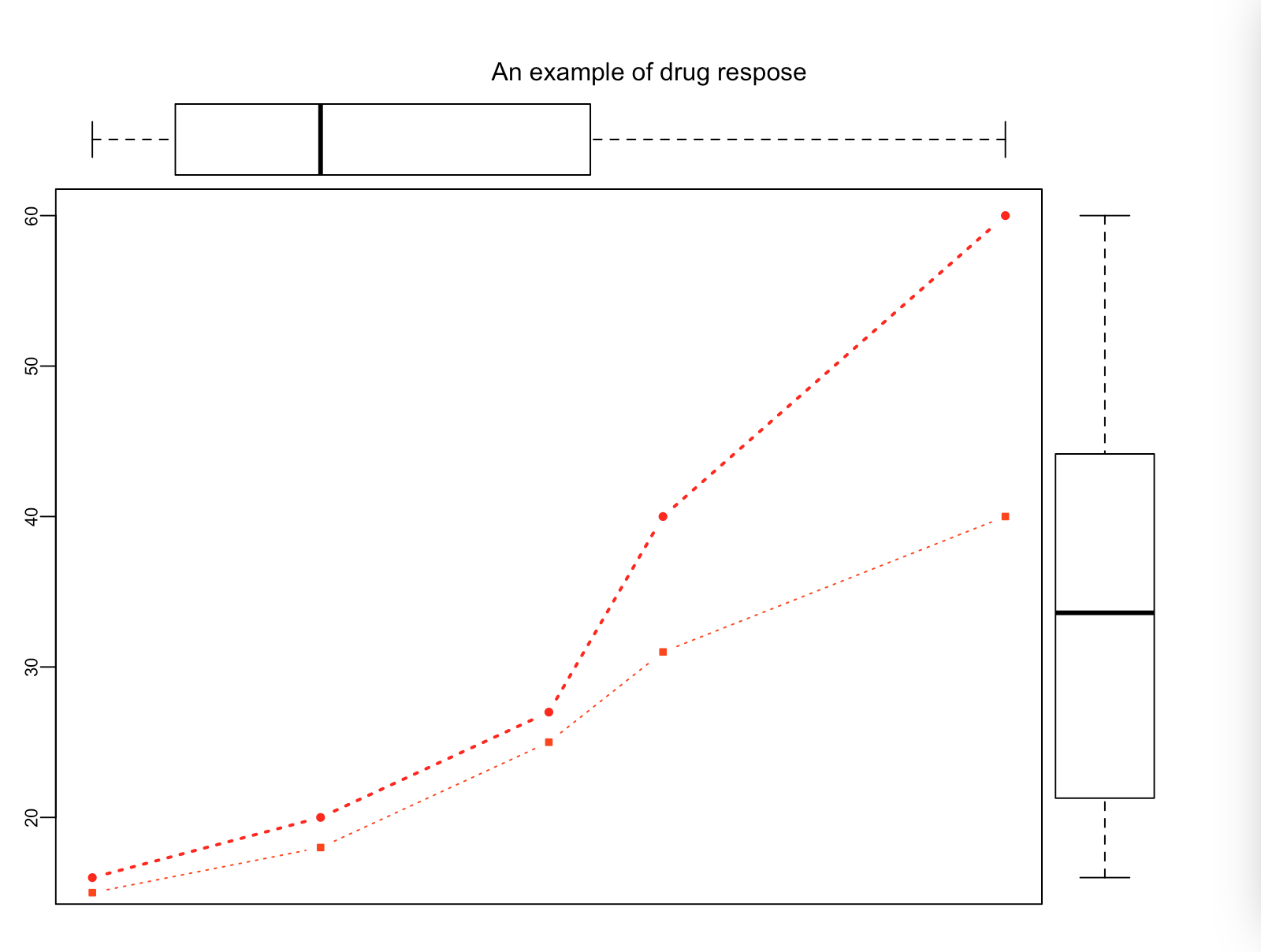 mtext("An example of drug respose", side=3, outer=TRUE, line=-3)