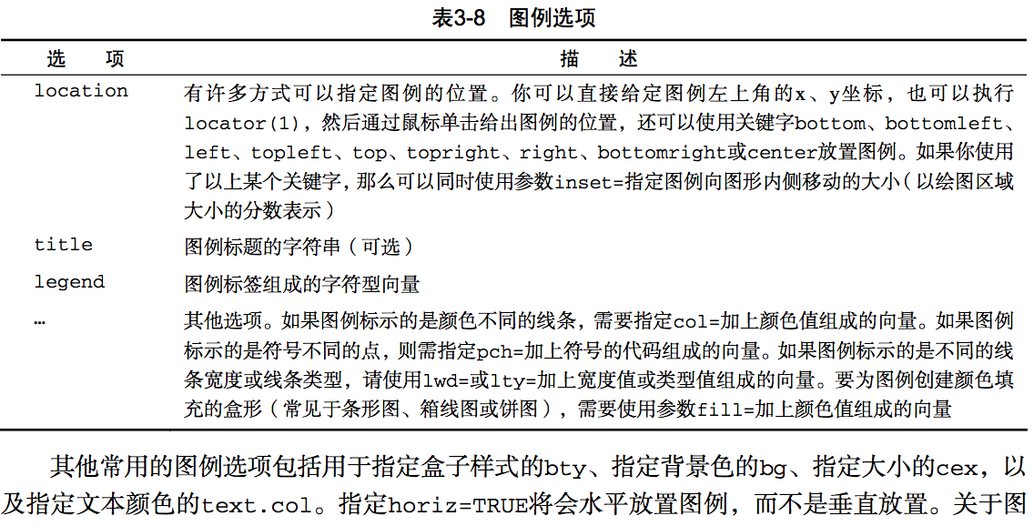 (3)legend(location,title,legend,.....)