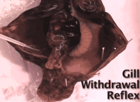 首先,他用水流冲击海兔的皮肤,那么受到刺激的海兔就会出现缩鳃反射。