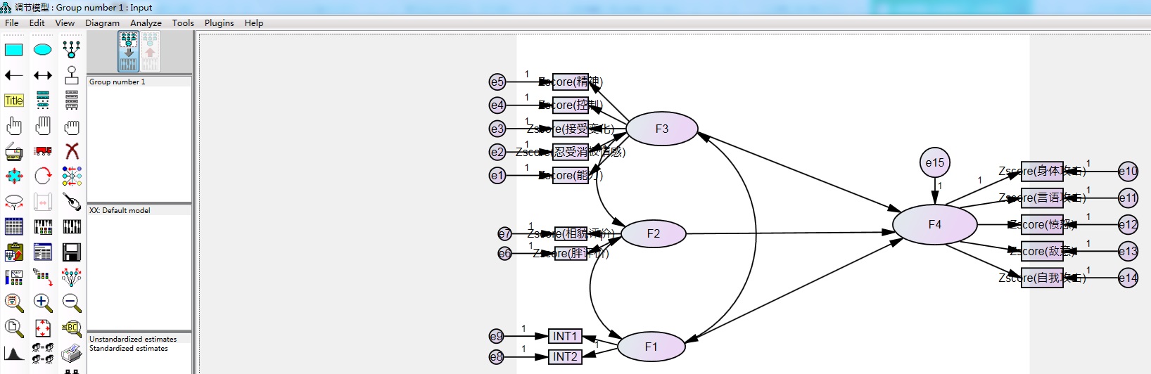 求助:Amos做调节效应,交互项使用标准化数据乘积结果不显示??