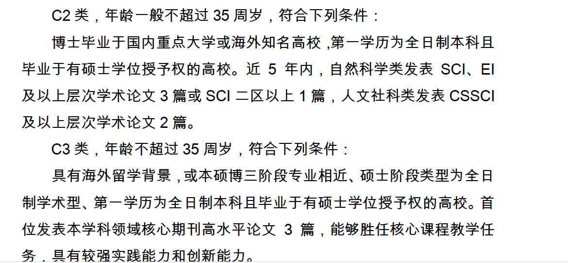 m316329925 发表于 2018-6-11 09:02 C2 类,年龄一般不超过 35 周岁,符合下列条件: 博士毕业于国内重点大学或海外知名高校,第一学历为全日制 ...