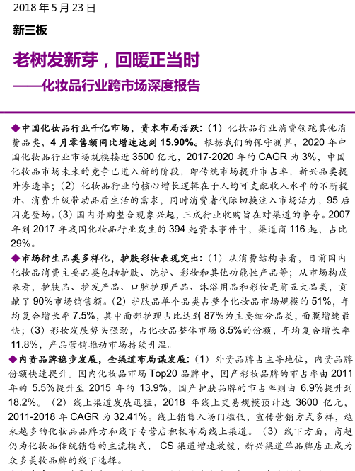 【独家发布】2018 光大证券 5月最新报告 化妆品行业跨市场深度报告