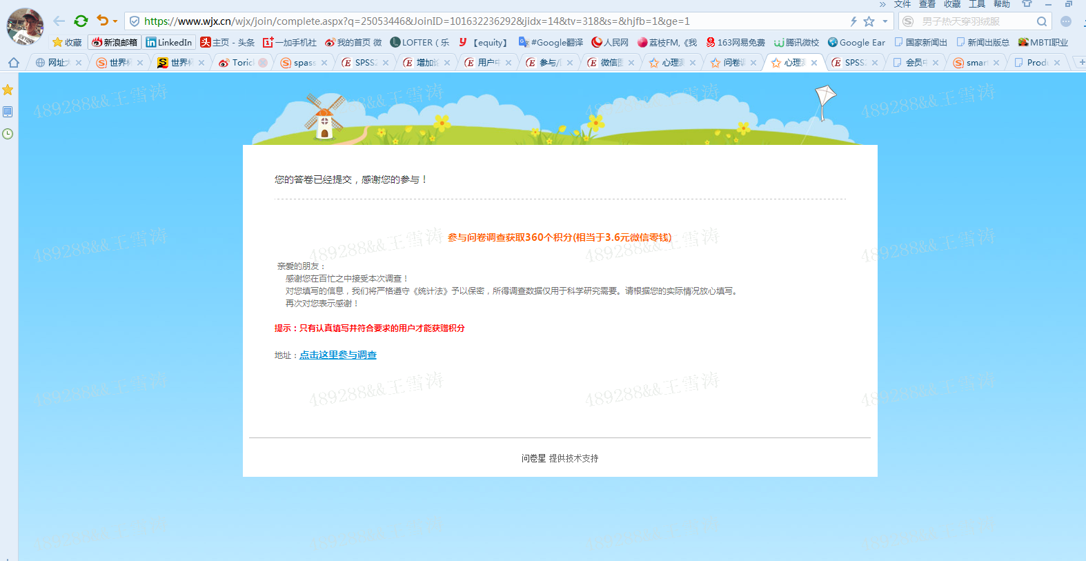 风羽静心 发表于 2018-6-13 09:43 已填写,请参考,其中一题让选“无法确定”,因为无此选项,故选择了最接近的“没有倾向”。最后祝楼主研究 ...