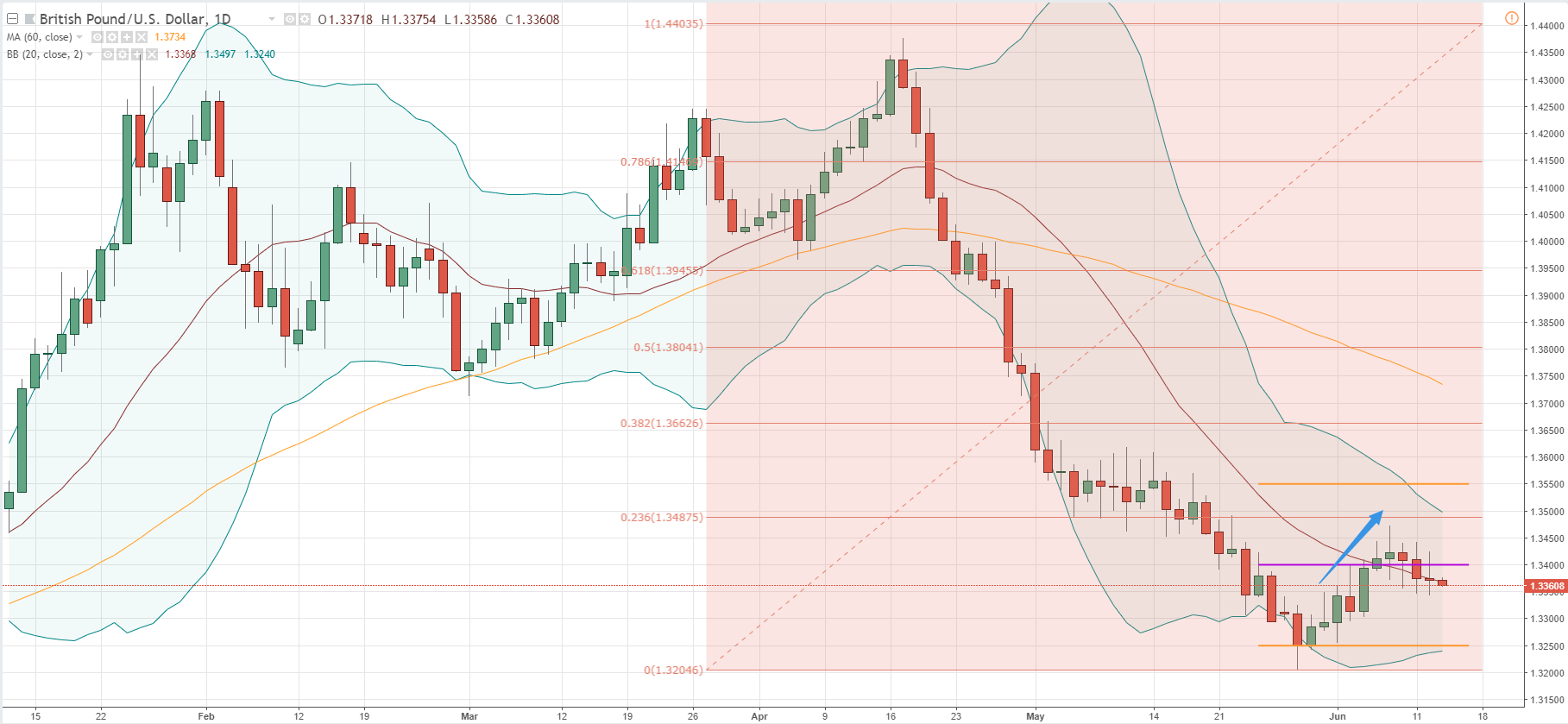 今天16:30将公布英国5月CPI月率及英国5月零售物价指数月率,也将会大幅影响短线英镑的行情。暂时中线策略上,以不变应万变,继续以英镑多单为主,技术形态上仍偏向利多,首目标1.357,初始止损在1.325。