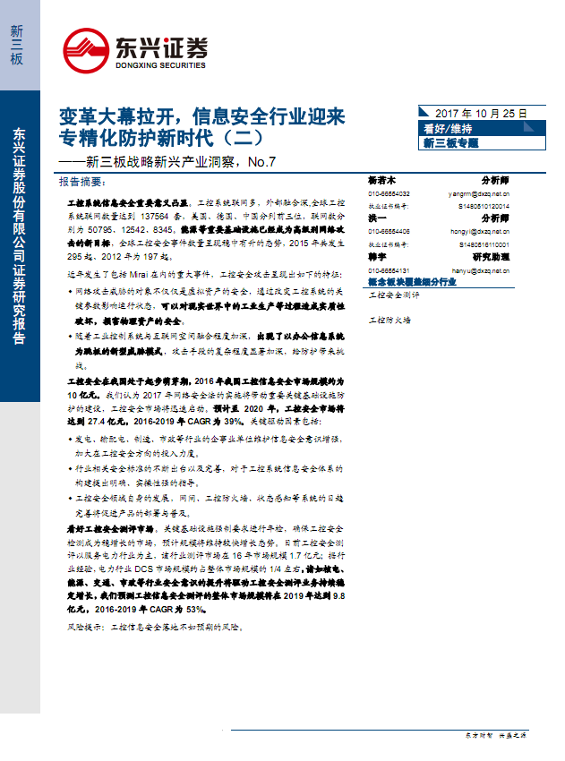 东兴证券-新三板战略新兴产业洞察,No.7:变革大幕拉开,信息安全行业迎来专精化防护新.pdf