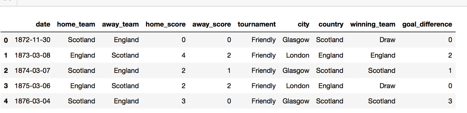 FIFA 排名是于 90 年代创建的,因此这里缺失很大一部分数据,所以我们使用历史比赛记录。点击以下链接获取所有数据: