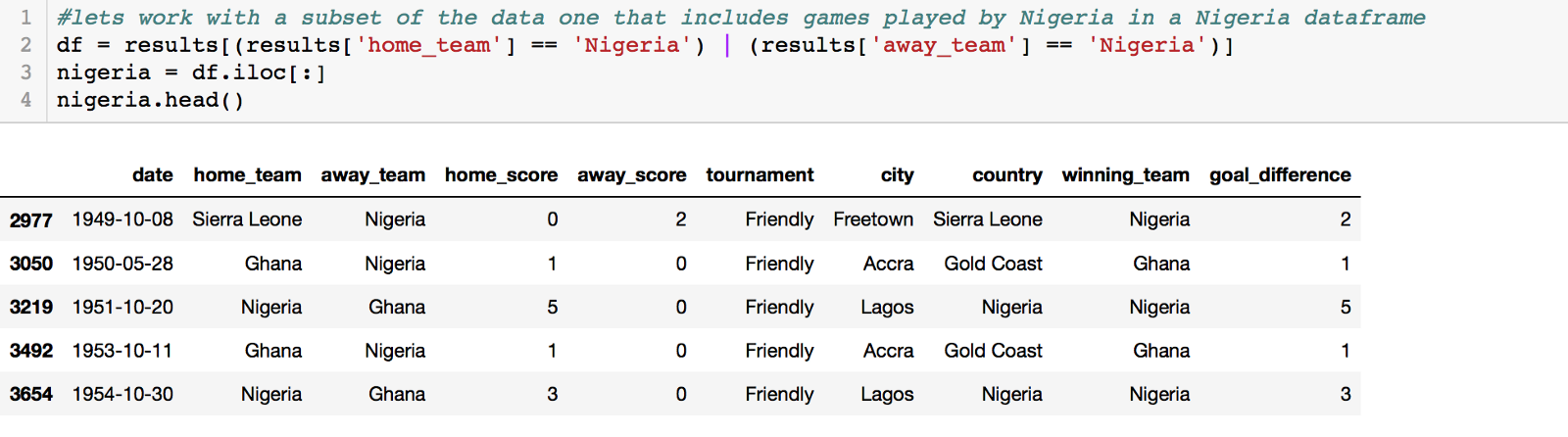然后我们着手处理仅包含尼日利亚参加比赛的一组数据(这可以帮助我们集中找出哪些特征对一个国家有效,随后再扩展到参与世界杯的所有国家):