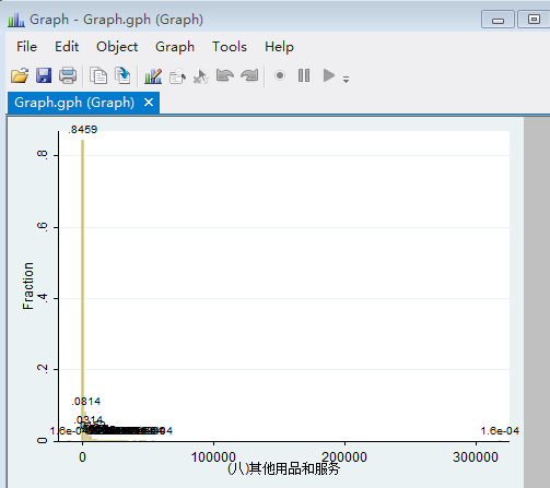 stata中做频率分布直方图,命令histogram 变量1,width(2000) addlabels fraction