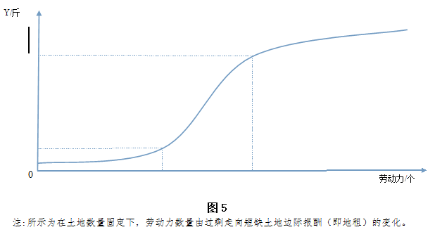 我们不是说土地的边际报酬曲线一定存在很显著的边际拐点,而是往往在很多情况下存在。虽然拐点的程度不尽相同。图2是它最明显的一个极端例子,不同程度类似下面图3与图4。