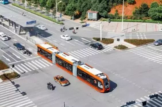 通过自主研发的、全球首创的“虚拟轨道跟随控制”技术,列车能精准地在既定“虚拟轨迹”上运行。载客多,不必专门铺设钢轨,可以像公交车一样灵活地穿行在城市之中。