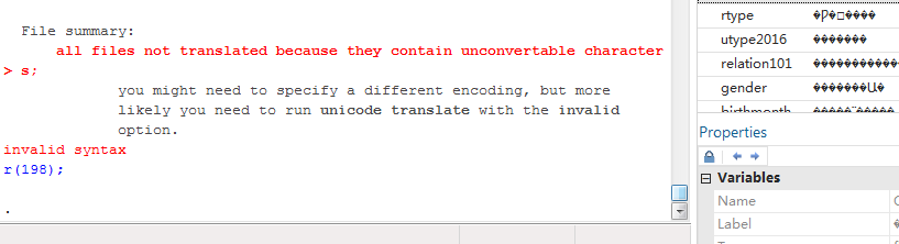 编码的问题,用STATA13打开试试?如果要用15就要处理label的编码,转换成unicode类型似乎就可以了
