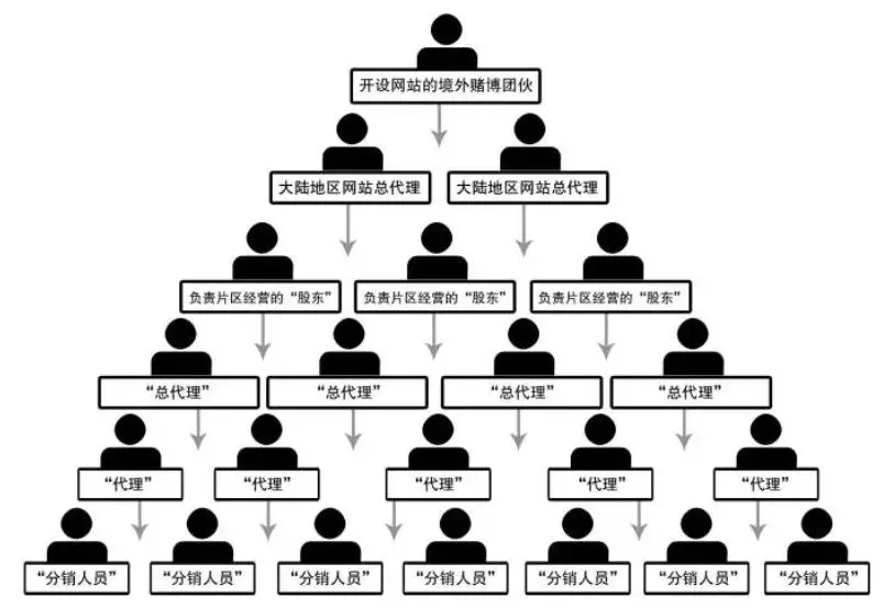 总代理庄家拿到网站权限之后,就会按照省市来寻找招收片区股东,股东们再开始找代理庄家,层层叠叠最后就是大家最常看到的,专门负责在朋友圈里面接单的分销人员,结构形式和传销大同小异,金字塔型,每层都有作为佣金的水钱。