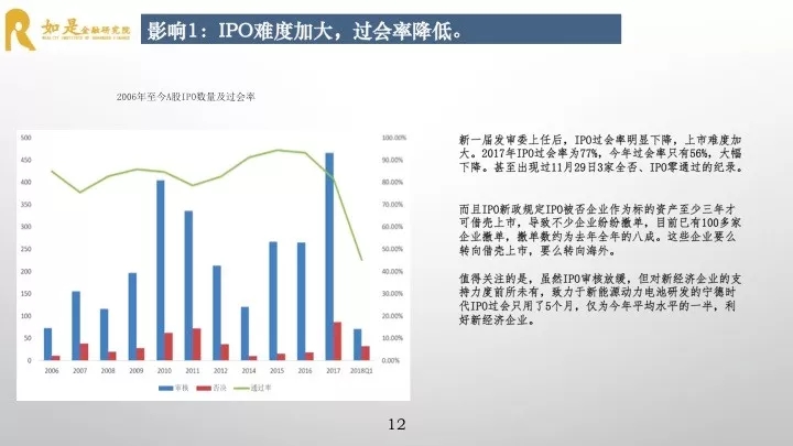 第一,IPO的过会率降低。2017年IPO过会率为77%,今年过会率只有56%,大幅下降。