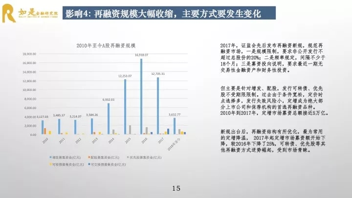 第四,再融资规模大幅收缩。2014年、2015年定增市场的火爆已成为历史,再融资的主要方式在发生变化,这其实给企业家提了一个醒,无论在市场火爆时还是形式复杂时,都保持相对客观、理性的头脑。