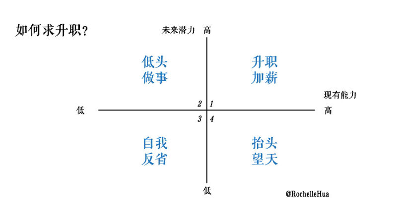一句话总结:要想升职加薪,就把现在的本职工作做好,同时让老板看到你有未来巨大的潜能(潜能 = 你能够胜任下一个职位,且有升职的意愿)。未来之星们多多干活,让老板放心;勤奋苦干的年轻人干好活以后多跟老板谈谈自己的梦想。又不会干活又不会画饼的盆友最最不入老板法眼了。