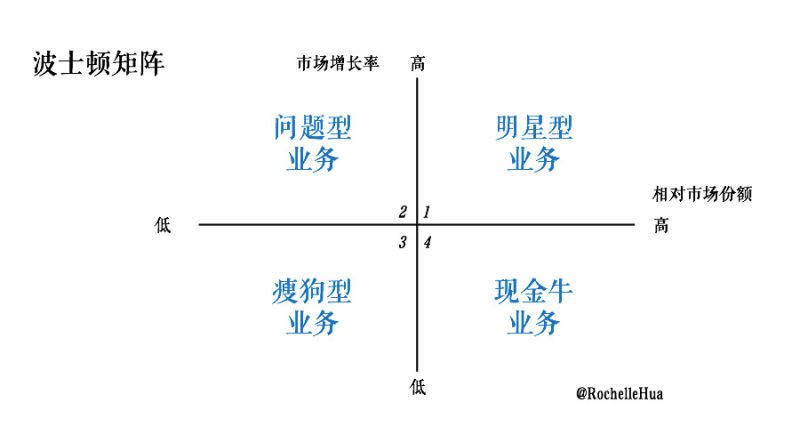 波士顿矩阵将公司业务区分出4钟业务组合: