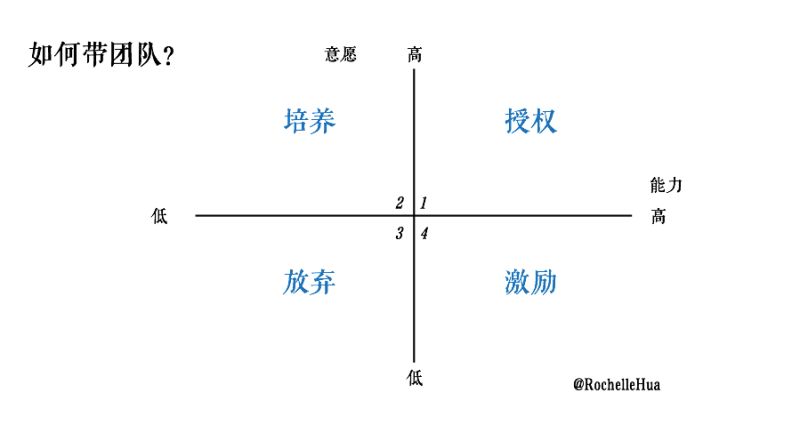 一句话总结:对不同的人要有不同的策略,自己能独当一面又肯干的要充分授权。想干还干不太好的,要教;能干会偷懒的,要激励。第四种,不讨论了,哎。