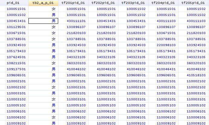 dyl天天向上 发表于 2018-6-28 09:19 您好,感谢您的回答,按照方法做了一下,结果显示第3、4、5、6、7列的性别都是一样了,不指导哪里出了什么 ...