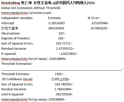 我的门槛变量是【农村人均存收入】,但是为什么回归出来的是解释变量里就没有了,只分了个Q<1305或者Q>1305啊?