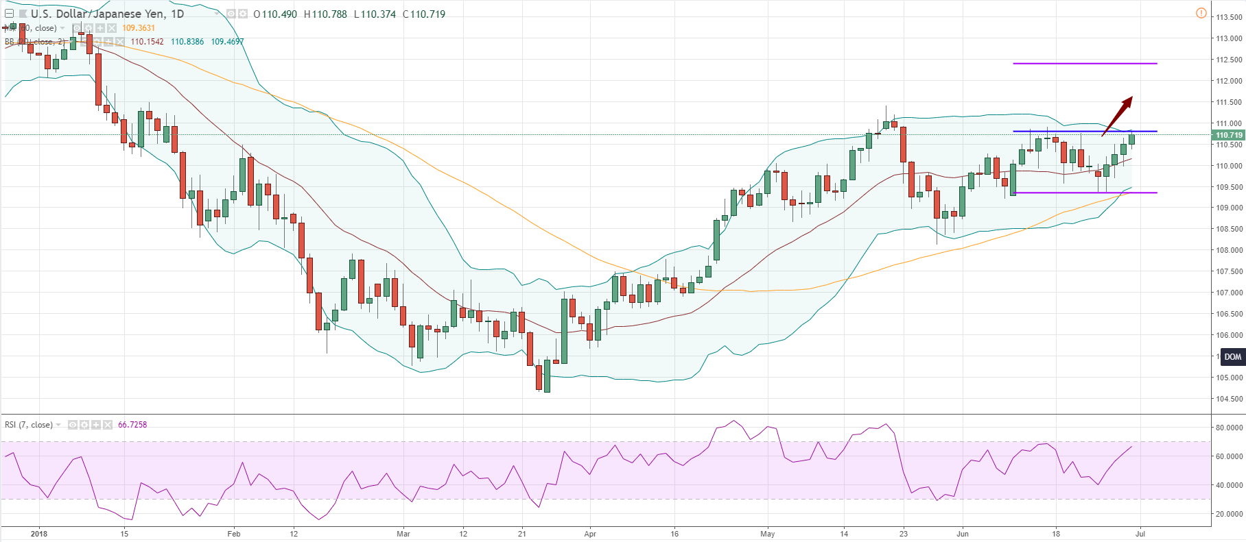 如果美元再度转强,相信本次最受惠会是美日(USDJPY),因为之前一段时间环球股市一直受压,令到避险货币日元偏强。在美元普遍转强之下,美日仍是在窄幅区间波动(109.40-110.80),昨晚美股开始回稳,今天中港股市日图也出现一根明显的阳线,环球股市未来两周回稳的概率正在增加,将有利日元回落。今晨美日(USDJPY) 汇价已突破110.80,如进取的投资者可考虑短线做多,目标可参考112.40,止损109.50。