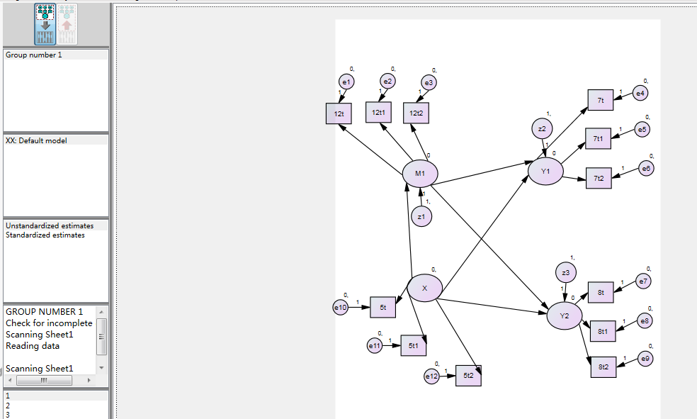用AMOS不能算出结果,显示的是XX:default model。请问是模型问题?数据问题?还是设置的问题?请问通过哪些方法可以算出结果?