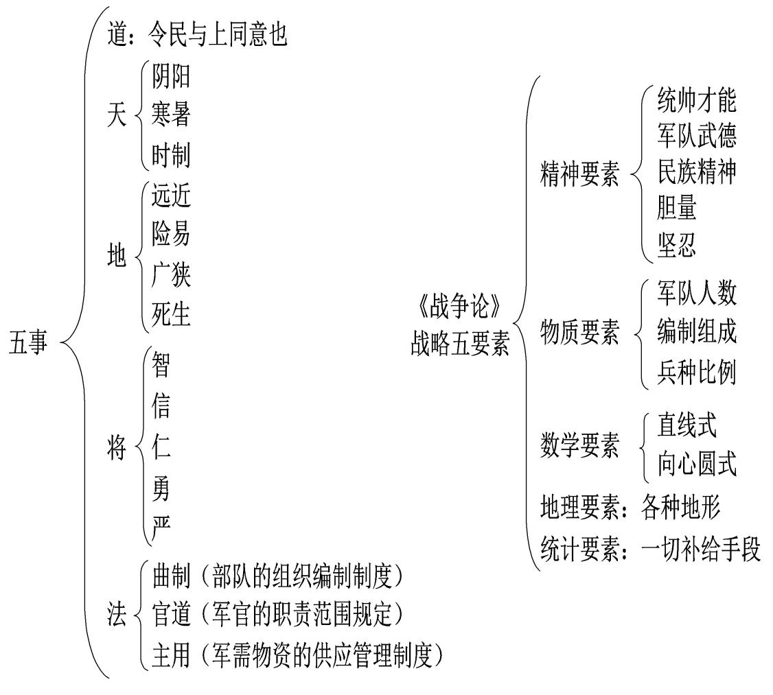 图10 《孙子兵法》的五事与《战争论》战略五要素