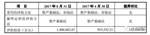 如上表所示,大船重工两次评估采用的评估方法均为资产基础法和市场法,并最终均采用资产基础法结果作为最终的评估结论。
