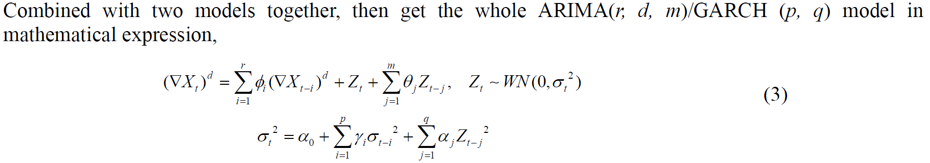 我现在在做ARMA-GARCH模型时间序列预测,碰到了一个问题。就是文献中这个模型的表述一般如下: