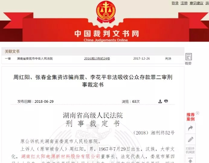 6月29日,判决文书网发布了一份二审裁定书,揭开了湖南红太阳董事长夫妇等人为IPO造假而集资诈骗1300余人或单位,累计非法集资逾28亿元的违法事实。
