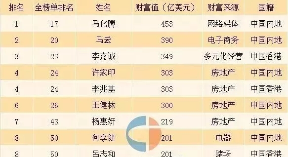 那再来看看中国的十大富豪