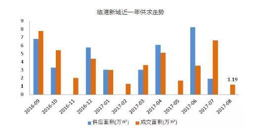 截至2017年8月,临港新城商品住宅可售面积23.17万方,环比上涨11.14%,同比上涨11.04%。库存经历3个月的连续回落后8月再次走高,出清周期也小幅拉长至6.39个月,5月份以来出清周期一直在6个月左右徘徊。