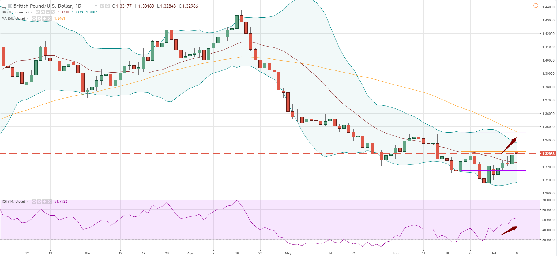 上周,英国首相特蕾莎·梅与内阁官员举行长达近12小时的会议后,就脱欧谈判立场达成共识,新提案将使得在农产品丶工业商品上设立英国-欧盟单一市场丶关税同盟成为可能。多家英国媒体预计,脱欧白皮书将于本周四(7月12日)公布。英国迈出软脱欧的一步,支撑了近期英镑反弹的力量。
