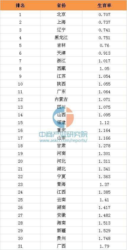 鼓励生育,就是就提高一个地区的生育率。辽宁率先提出要鼓励生育,它的生育率在全国到底处于怎样的水平?以下是2015年全国31省市人口生育率排行榜(表一):