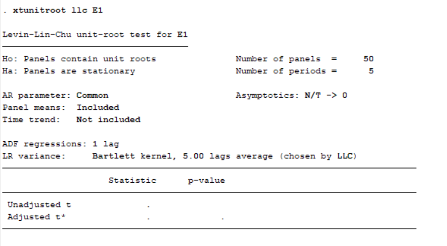 fangshoulin 发表于 2018-7-12 00:28 这是面板数据单位根的llc检验,从图片来看,没有数据!!并且n是t的7倍,并且总共5期数据,是不是可以考虑 ...