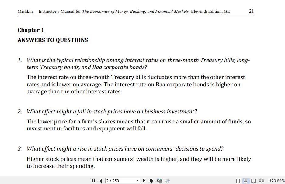 solution of the economics of money banking and financial markets 11th edition