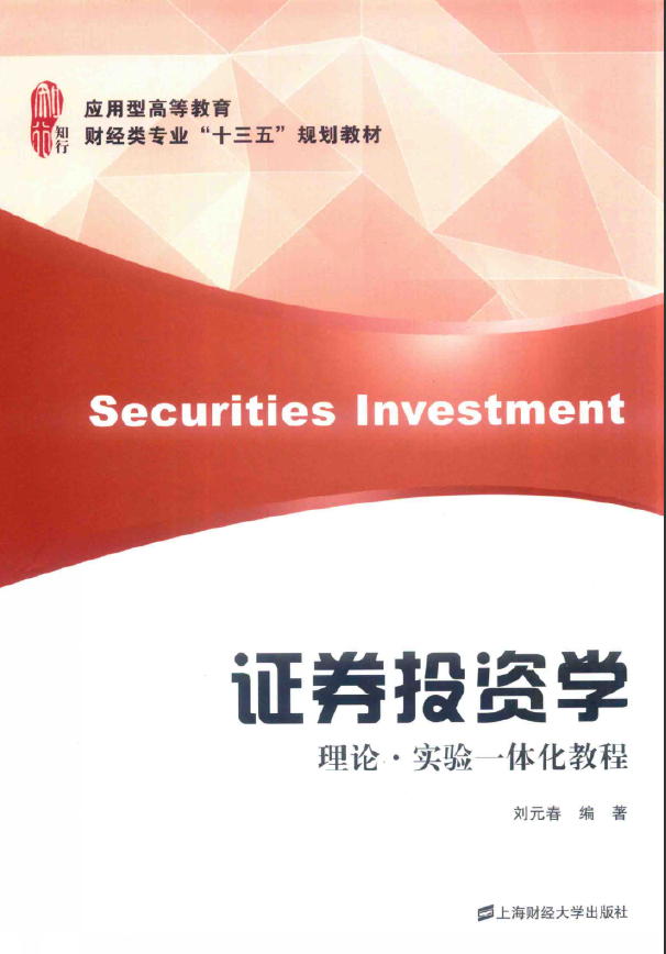 《证券投资学:理论·实验一体化教程/应用型高等教育财经类专业“十三五”规划教材》内容分上下两篇。上篇为基础理论篇,共8章,包括证券与证券市场概述、证券投资工具、证券发行市场、证券交易市场、证券投资基本分析、证券投资技术分析、证券投资的收益与风险、证券组合与管理;下篇为模拟实验篇,共6个实验单元,包括证券行情分析系统基本操作、证券交易模拟、证券投资基本分析、证券投资盘面分析、证券投资技术分析主要理论、证券投资技术分析主要指标。《证券投资学:理论·实验一体化教程/应用型高等教育财经类专业“十三五”规划教材》有三个突出特点:一是打破了证券投资学和证券模拟实验单独出版的惯例,将基础理论与模拟实验有机融合。二是突破了传统编排体例,设有学习目标、开篇案例、本章小结、知识测试、课外导航模块,栏目丰富,真正体现了“老师好教,学生好学”。三是梳理了历年证券从业人员资格考试真题作为知识测试的题目,实现知识测试与证券从业资格考试的匹配对接
